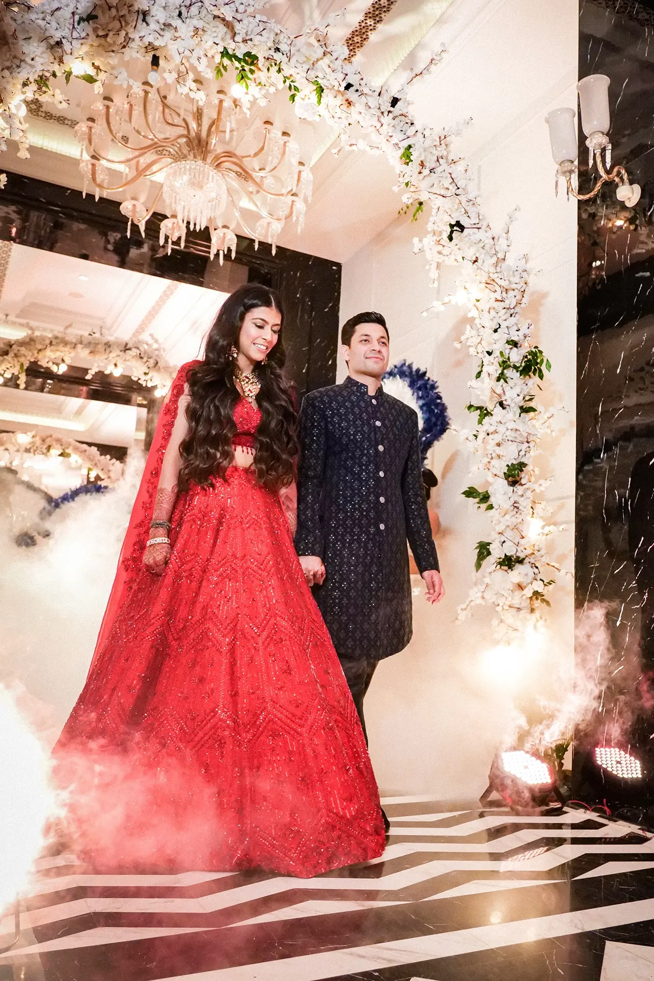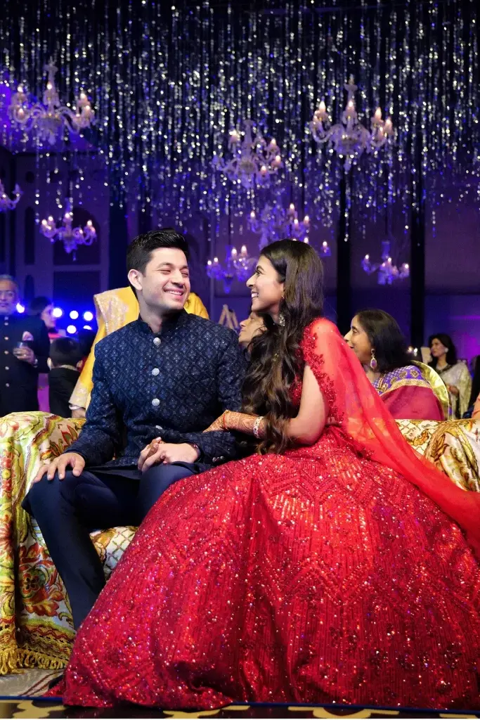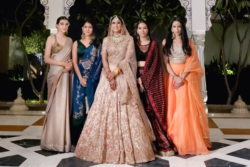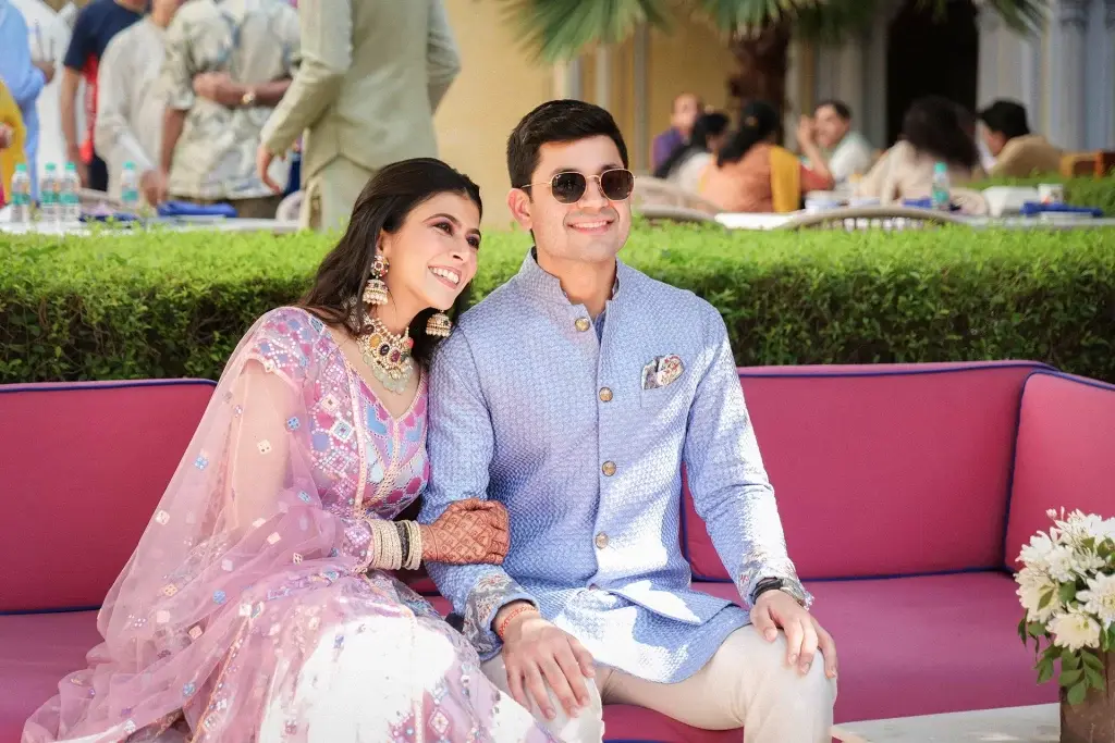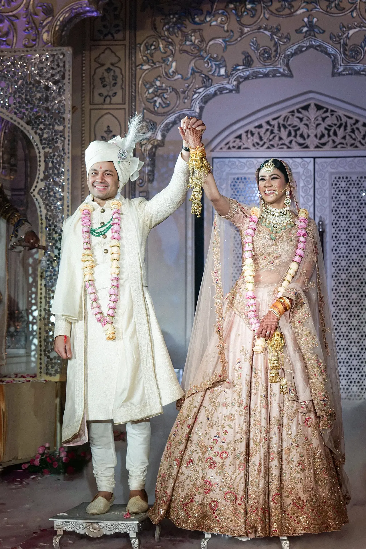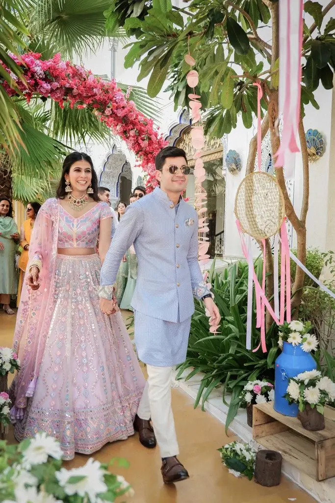 Navya and Ankrish’s grand destination wedding in Jaipur has a very interesting back story. The couple has been together for 8 years and engaged for 2 years before they finally decided to tie the knot. Their initial plan was to have a big fat wedding celebration in Delhi, but keeping both their grandmothers’ health in mind, they decided to celebrate with just their family. Navya tells us that having a Jaipur wedding was all by chance. Once they stopped by to have lunch at the Leela Palace in Jaipur and witnessed the magnificent property thereof, they knew this was it. And next thing you know, they were planning their Jaipur wedding.