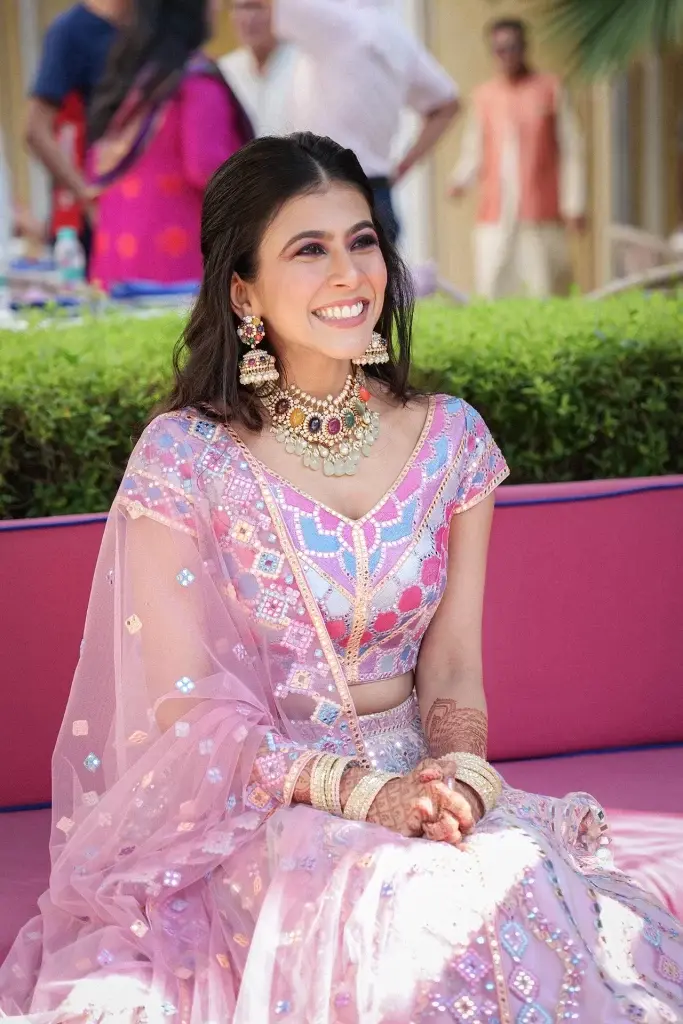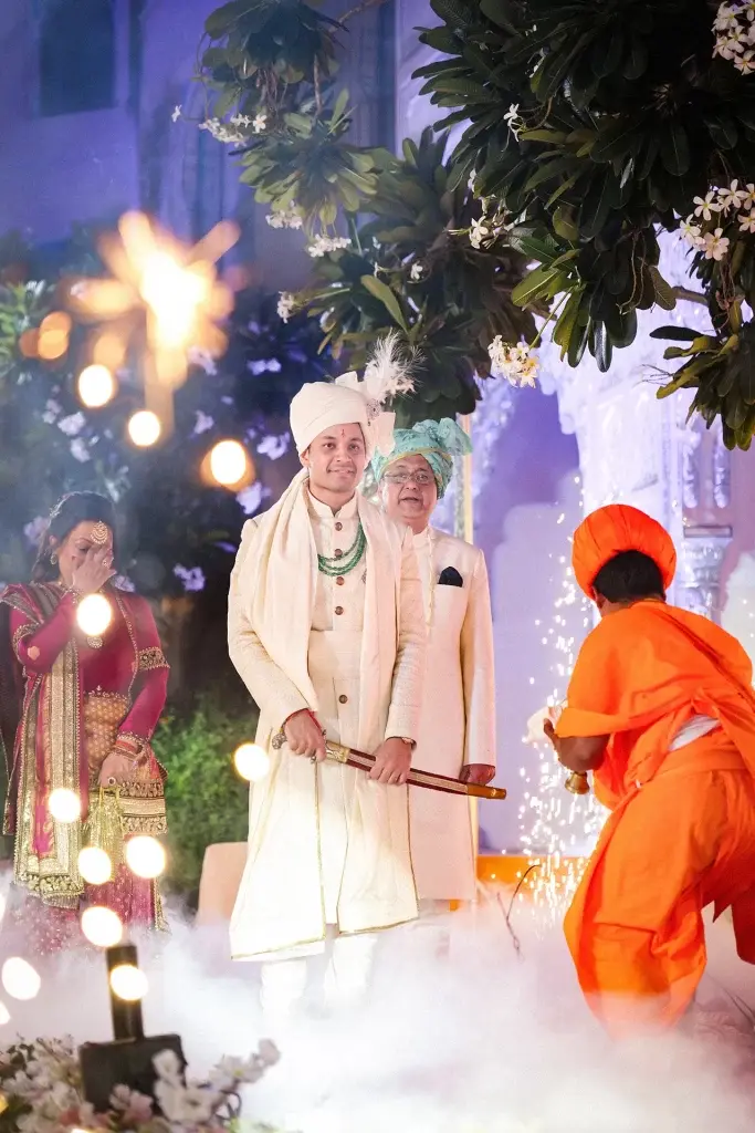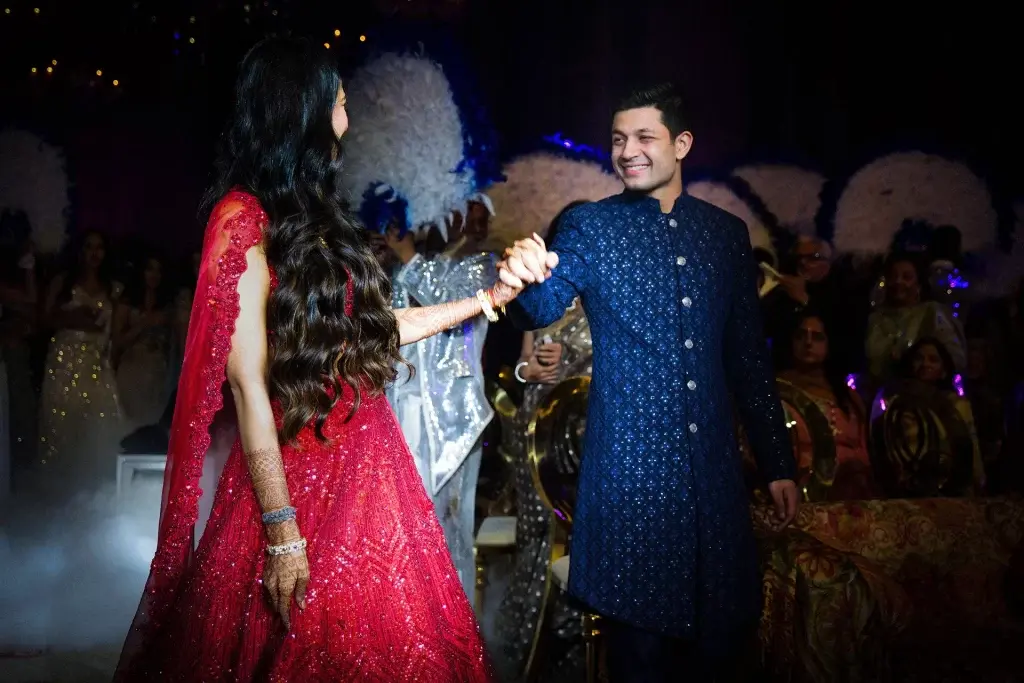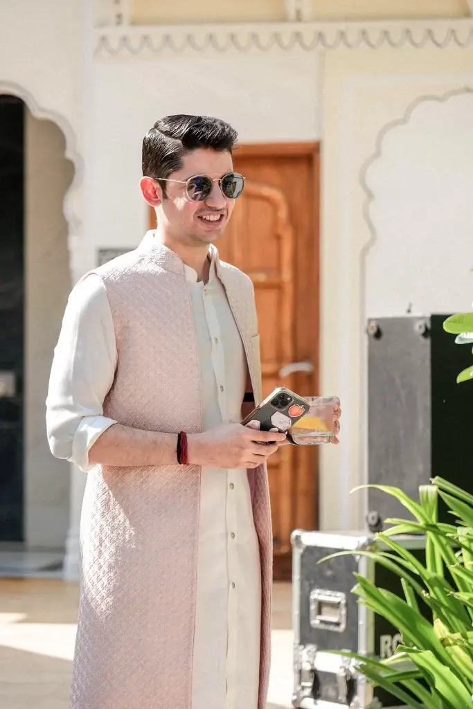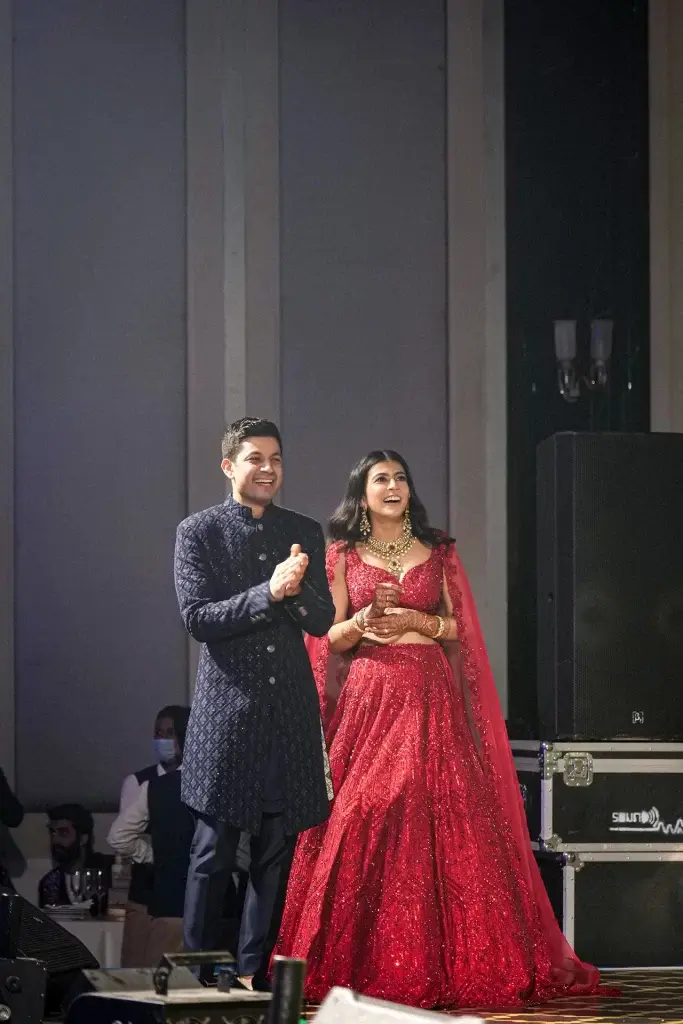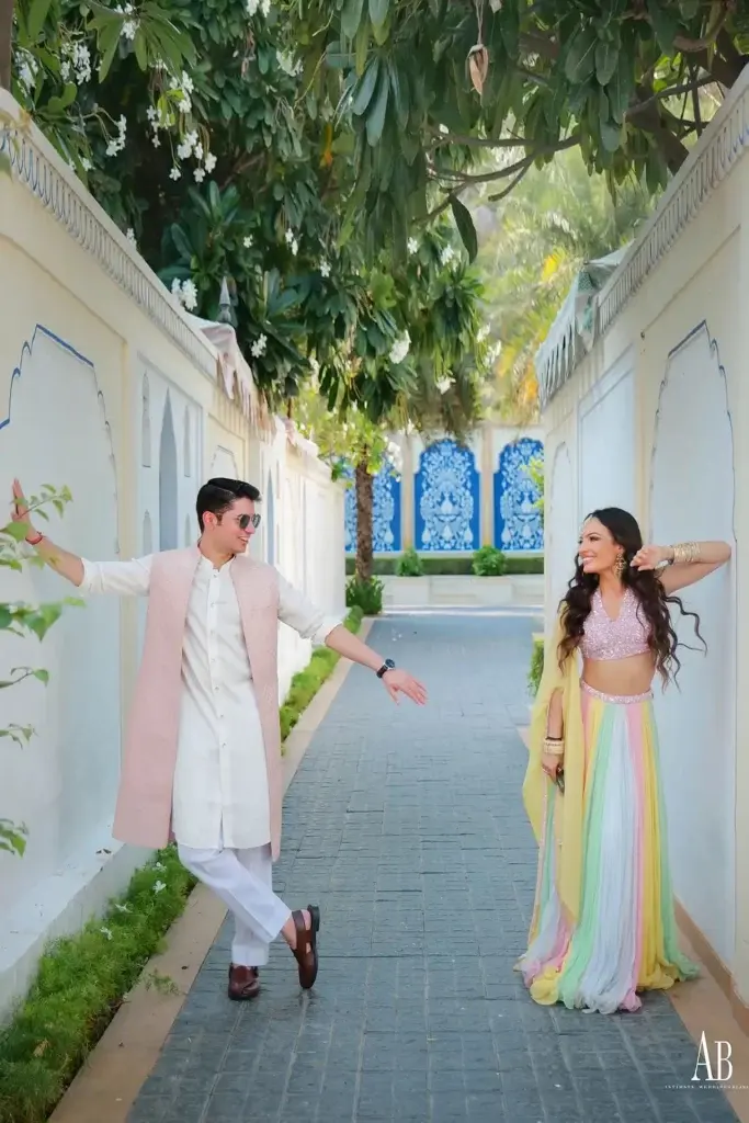 Navya and Ankrish’s grand destination wedding in Jaipur has a very interesting back story. The couple has been together for 8 years and engaged for 2 years before they finally decided to tie the knot. Their initial plan was to have a big fat wedding celebration in Delhi, but keeping both their grandmothers’ health in mind, they decided to celebrate with just their family. Navya tells us that having a Jaipur wedding was all by chance. Once they stopped by to have lunch at the Leela Palace in Jaipur and witnessed the magnificent property thereof, they knew this was it. And next thing you know, they were planning their Jaipur wedding.