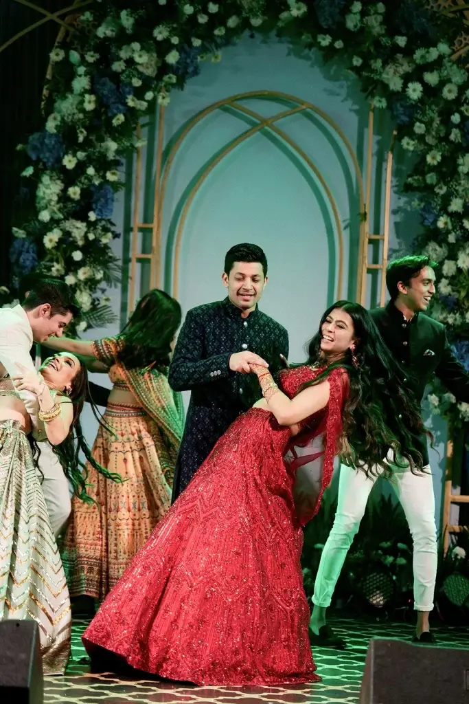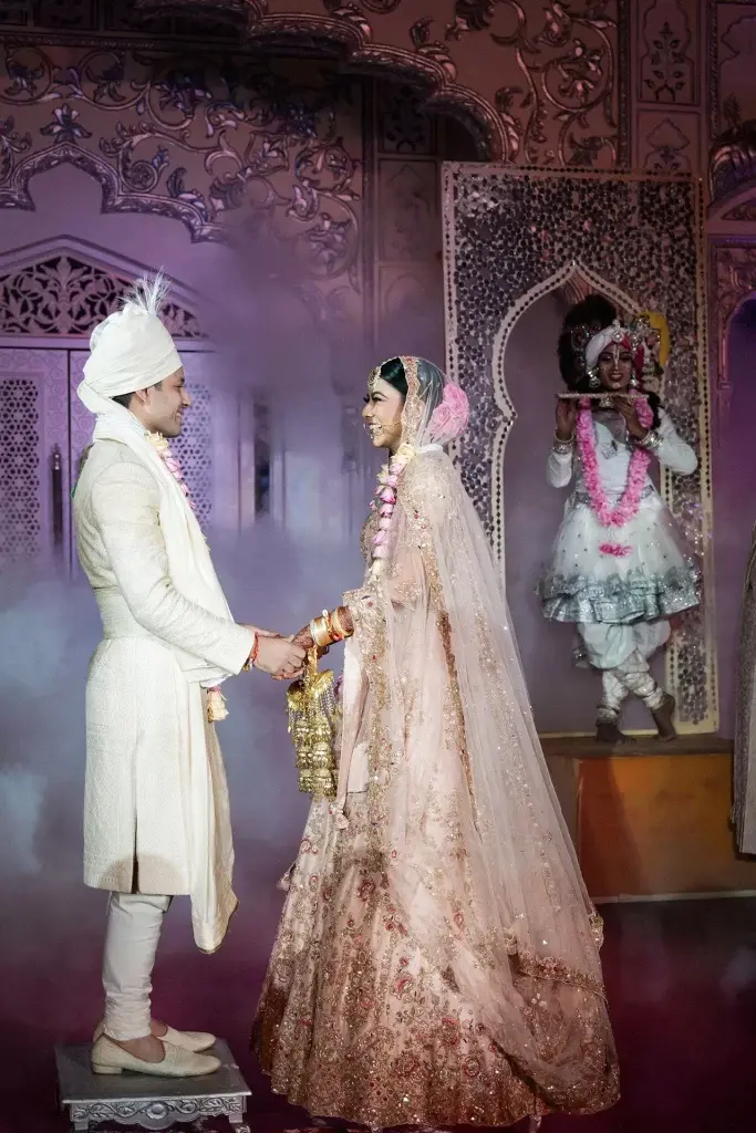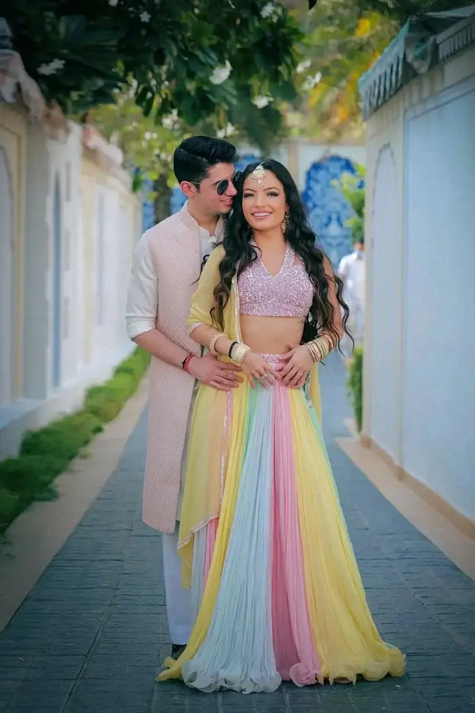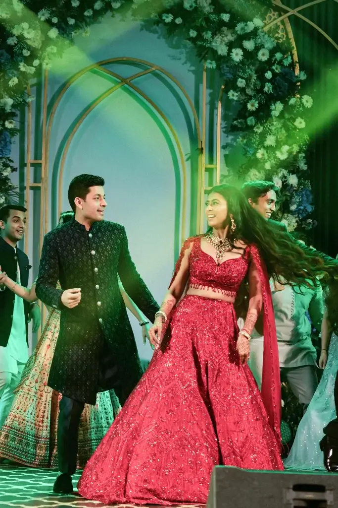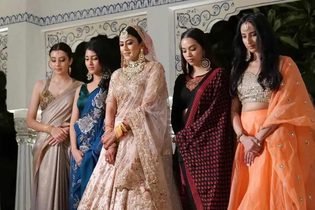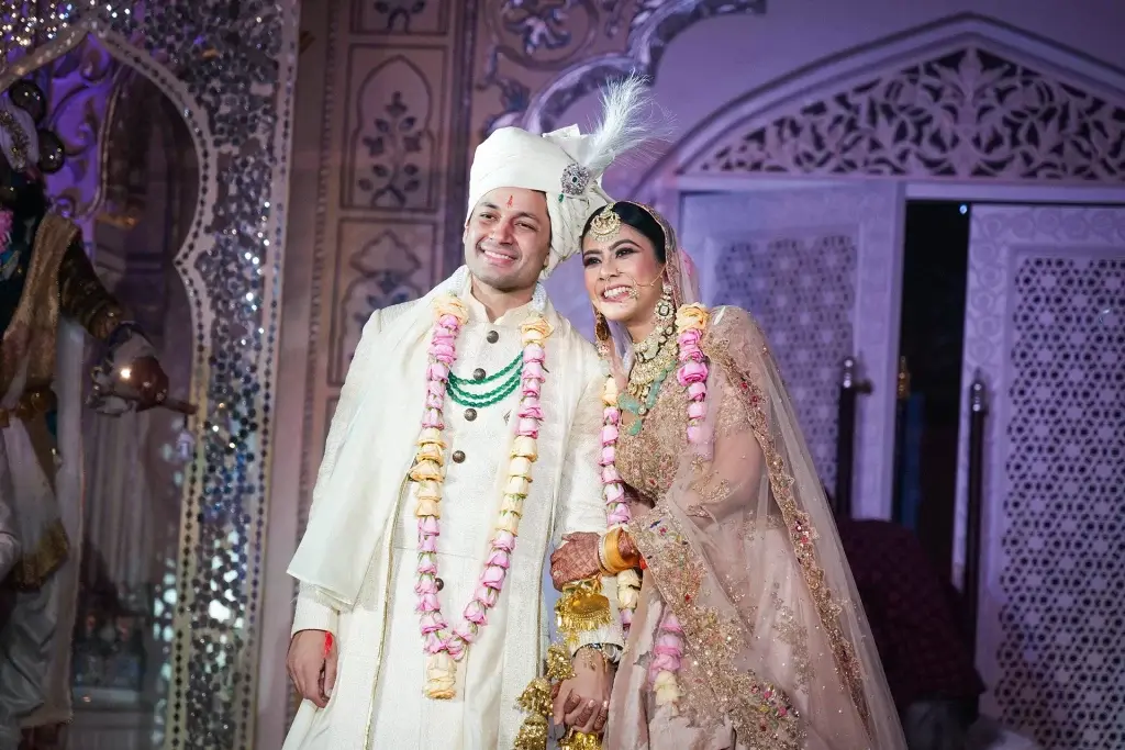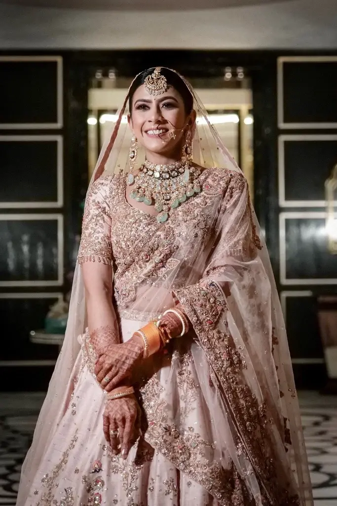 Navya and Ankrish’s grand destination wedding in Jaipur has a very interesting back story. The couple has been together for 8 years and engaged for 2 years before they finally decided to tie the knot. Their initial plan was to have a big fat wedding celebration in Delhi, but keeping both their grandmothers’ health in mind, they decided to celebrate with just their family. Navya tells us that having a Jaipur wedding was all by chance. Once they stopped by to have lunch at the Leela Palace in Jaipur and witnessed the magnificent property thereof, they knew this was it. And next thing you know, they were planning their Jaipur wedding.